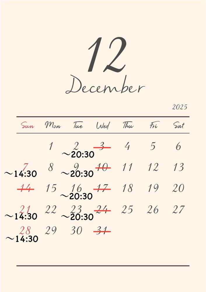 ※夜に更新しますので、既に埋まってしまっている事があります。ご了承ください